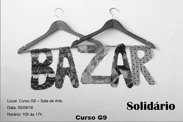Alunos do 2º ano do Ensino Médio do Curso G9 realizarão na próxima segunda-feira, 5 de agosto, o 1º Bazar Solidário de 2016. O Bazar, organizado pelos próprios alunos, sob a orientação da professora de História, Patrícia Ribeiro, estará aberto para visitação das 10h até as 17h, na sala de Arte.