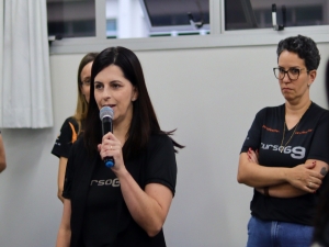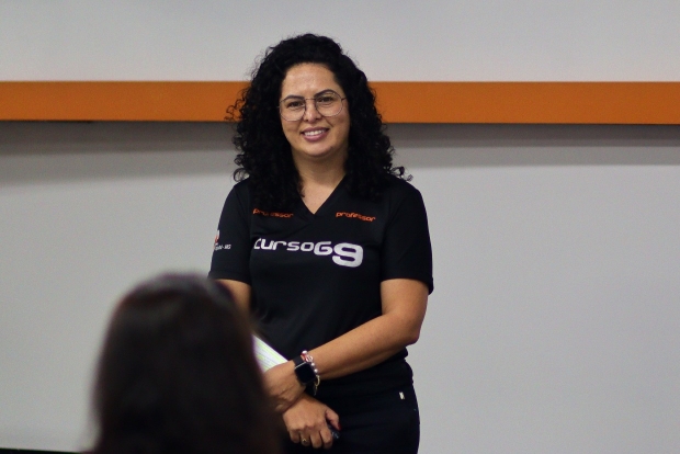 pedagógica do Curso G9, que deu as boas-vindas às famílias e destacou a