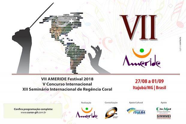 A sétima edição do Ameride – Festival Internacional de Corais irá reunir em torno de 500 coralistas em Itajubá, entre os dias 27 de agosto e 1º de setembro. As apresentações serão realizadas em escolas, igrejas, no Hospital Escola, na concha acústica da Praça Theodomiro Santiago e no Teatro Municipal Christiane Riêra. Todas as apresentações são gratuitas: são 24 corais, de quatro países latino-americanos. O Curso G9 é correalizador do evento.