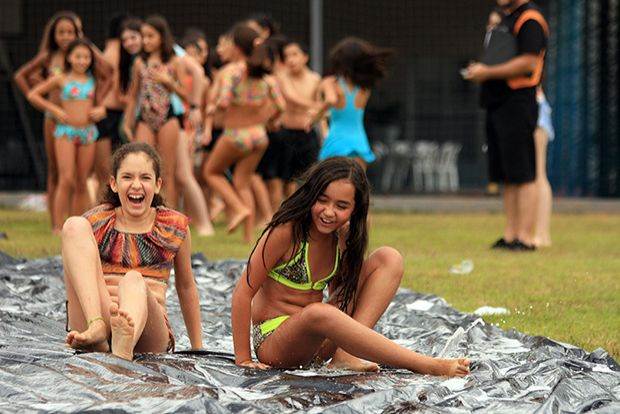 Mateus Francisco se referiu à brincadeira de escorregar em uma lona, toda molhada, que foi colocada no campo de futebol do Curso G9. A outra atividade consistiu no enchimento de um balão de água com um aluno dentro.