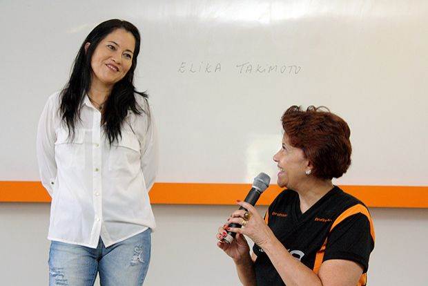 Elika Takimoto é professora de Física no Centro Federal de Educação Tecnológica do Rio de Janeiro (Cefet-RJ) e autora de livros infantis e adultos nas três áreas do conhecimento. Durante a apresentação, Elika falou sobre sua atuação nas redes sociais, sua experiência no ensino de jovens e adolescentes e seu percurso acadêmico, que vai da graduação em Física até o doutorado em Filosofia.