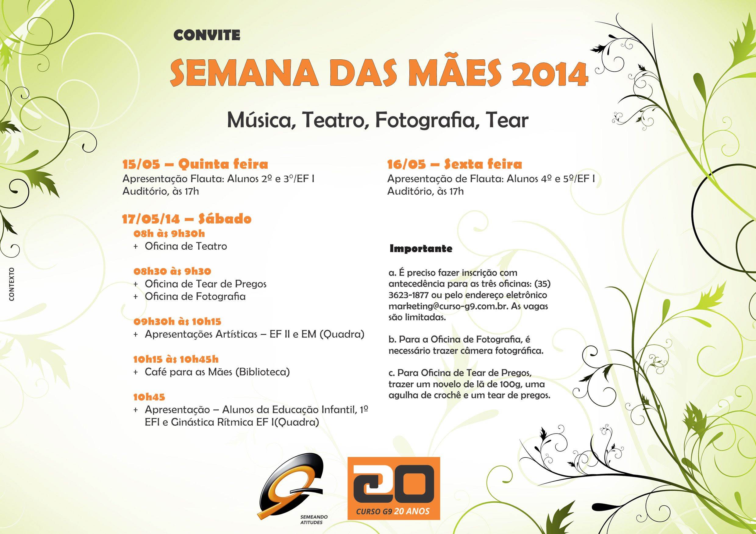 Semana das Mães tem oficina e apresentações artísticas