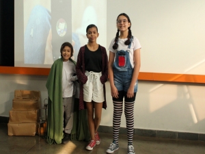 que o teatro foi muito legal e divertido, porque cada um fez uma peça teatral