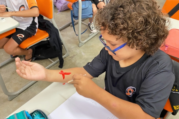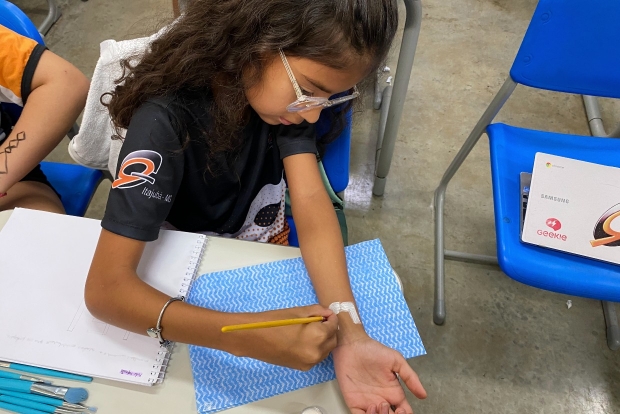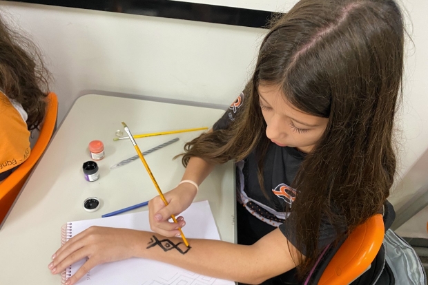 cada aluno teve que reproduzir o mesmo padrão no braço.