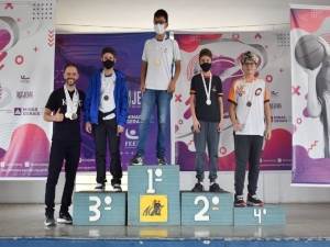 nacionais e conquistou três medalhas, uma de cada modalidade: Blitz, Rápida e