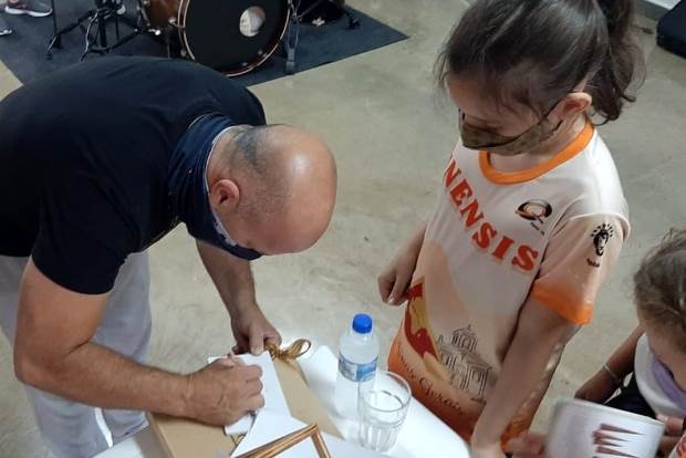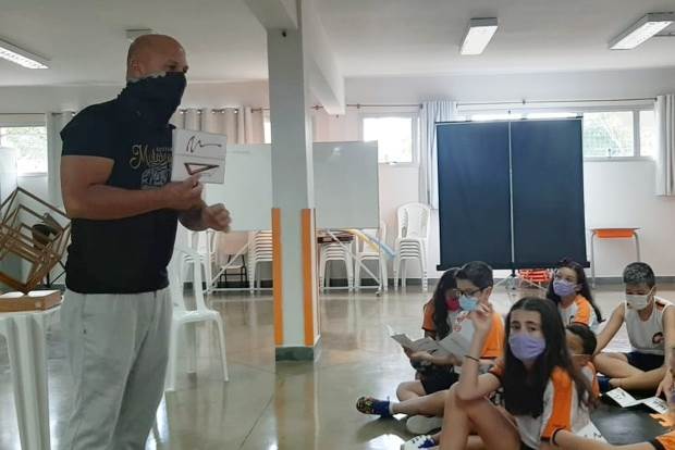 vir à escola o artista plástico Leonardo Bueno para participar de um bate-papo