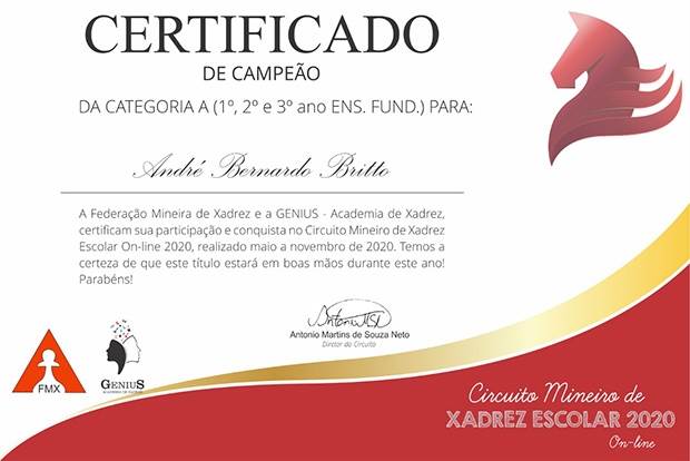 Minas Gerais) e no Campeonato Brasileiro de Xadrez Escolar.