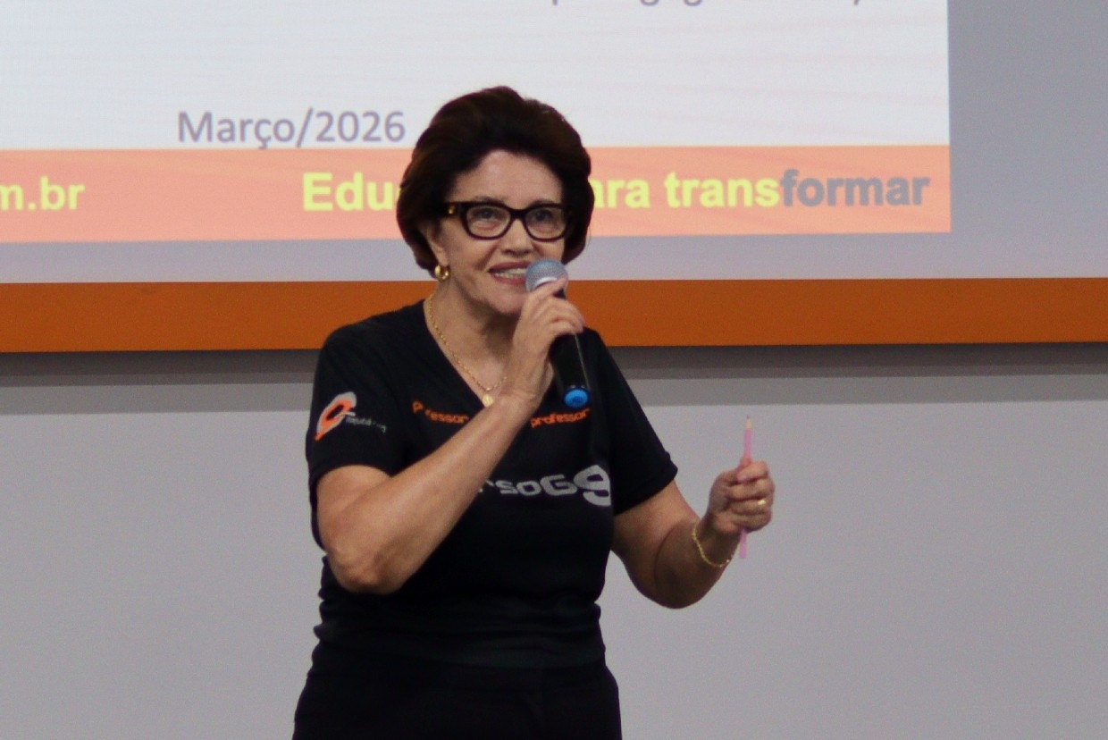 pedagógica do Curso G9, que deu as boas-vindas às famílias e destacou a