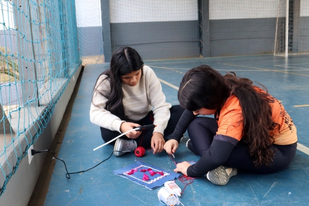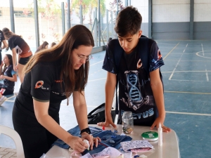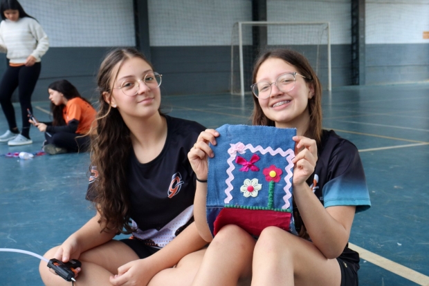 Alunos do 7º ano do Ensino Fundamental II (Turmas F71 e F72) participaram de uma oficina de reutilização de jeans com duas artesãs de Itajubá, Maria de Fátima Pagan e Paula Querino Mira da Silva. A atividade integra as pesquisas para a Feira do Conhecimento, que tem como tema geral “Atitudes para renovar o Mundo”. O subtema das turmas é “Pegue Leve Nesse Consumismo”.